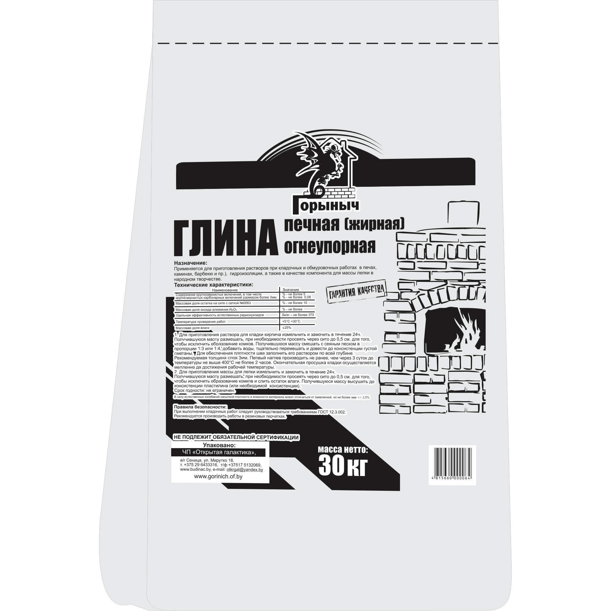 Глина печная "Горыныч" (30 кг)
