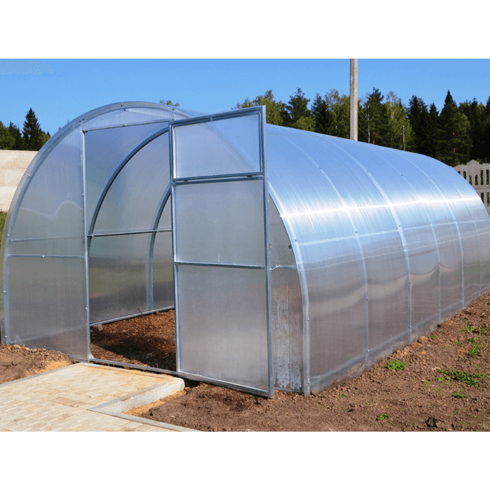 Каркас теплицы изготовлен из стальной оцинкованной профильной трубы сечением 40*20 мм, торцы теплицы цельносварные. Для лучшего проветривания теплицы,предусмотрено наличие двери и форточки с каждого торца.