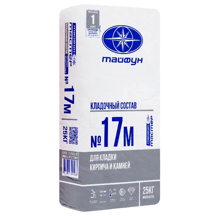 Кладочный состав «Тайфун Мастер» №17 применяется для кирпичной и каменной кладки стен и перегородок из кирпича, природных и искусственных камней пра­вильной и неправильной формы. Также применяется для запол­нения выбоин, сколов и трещин в кладке.